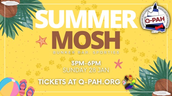 SUMMER MOSH 2024 Join us for our first Mosh of 2024! Sunday January 28th from 3pm! MEMBERS $5 | NON MEMBERS $10 PLUS Join us for dinner after Mosh upstairs in Nellies Showroom with Top This Sunday's After a huge month of Pupmas, Christmas & New Years it's time to let your paws out & find your pupspace for a fun filled afternoon at the Summer Mosh! We will have our usual Board Games, Mosh Mats and the Ball Pit (with some extra balls thanks to Santa Paws). Meet some new Pups and reconnect with some you have missed GEAR IS NOT REQUIRED BUT WELCOME Q-PAH events are open to adults 18+ of any gender or sexuality. Q-PAH events are non sexual, no bare bums or insertible tails.  AGM is coming, get your Q-PAH Membership NOW: https://qpah.tidyhq.com/public/membership_levels